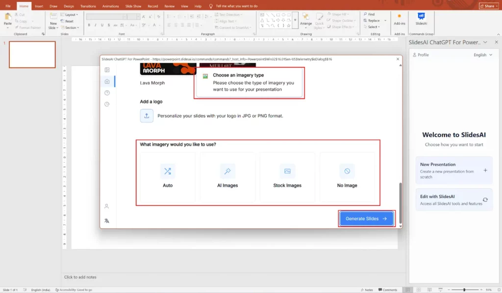 Step 8: Pick a slide design template from the available options and click Generate Slides.