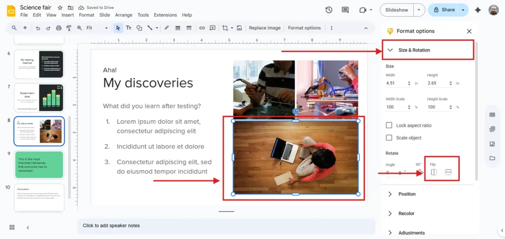 Learning how to flip an image in Google Slides only takes a few clicks. You can flip pictures either horizontally or vertically, depending on the effect you want. Follow these steps to get it done quickly.