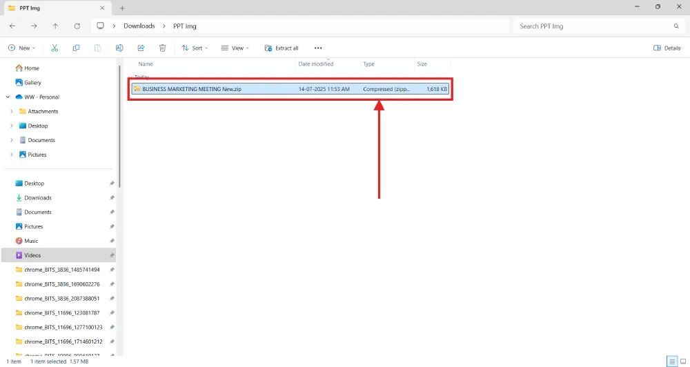 If you want to save all the images from a PowerPoint at once and keep them in their original high quality, this method is a great choice. It works by turning your PowerPoint file into a zip folder so you can grab the images directly.