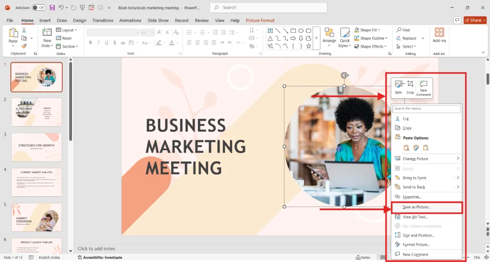 If the “Save as Picture” option isn’t working, it could be due to PowerPoint glitches, outdated software, or issues with the image or object format. Try restarting PowerPoint, updating your software, or copying the object to a new slide and trying again. Also, ensure you’re right-clicking on an actual image or grouped object; you can try the other methods above.