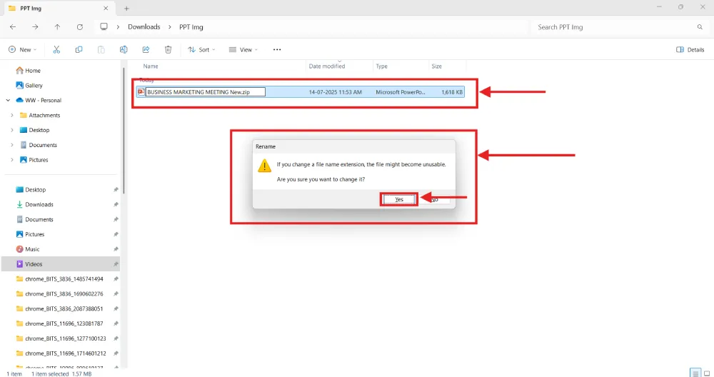 Method 2: Using .zip File Extension, Best for Exporting High-Resolution Images from PowerPoint