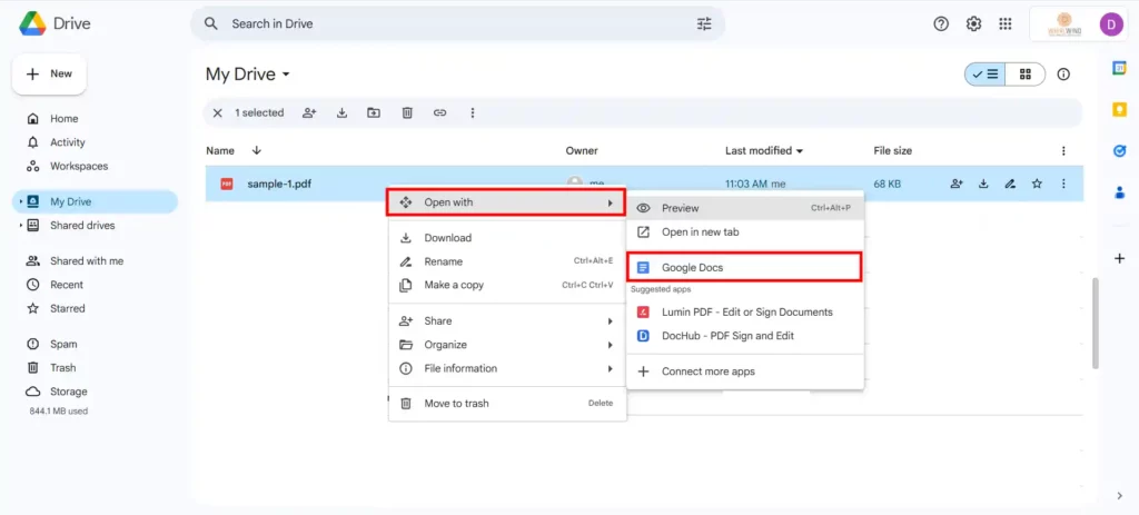 - Click “Open with” → “Google Slides”: This tells Drive to convert the file so you can edit it directly in Slides.