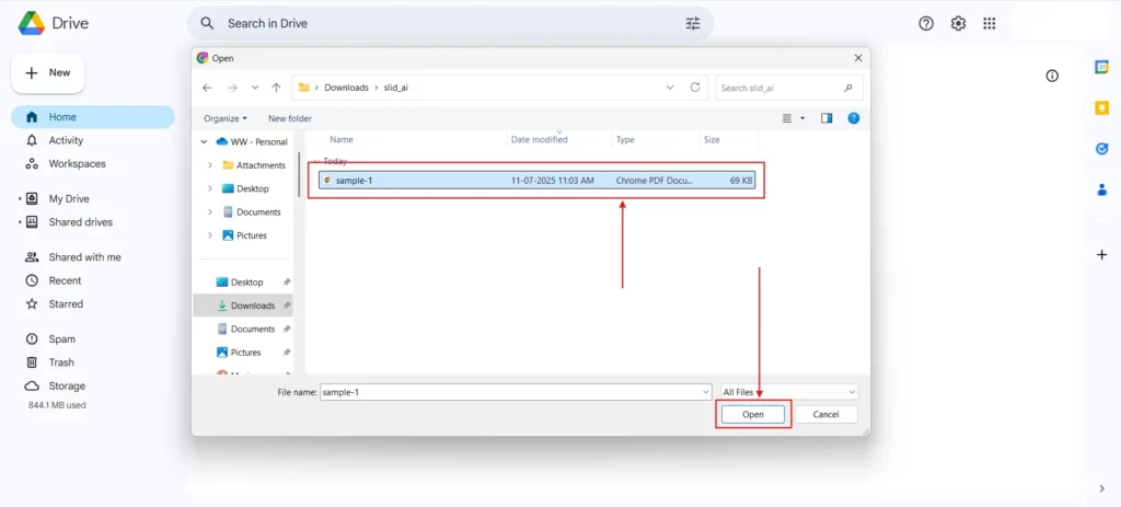 - Let the Upload Finish: Once it’s done, the file will appear in your Drive. You can move it into folders, share it, or open it with Google Slides for editing.