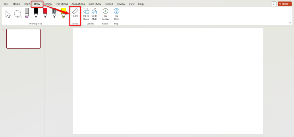 Method 1: How to Rotate the Ruler in PowerPoint Using the Draw Tab (for Touch/Pen Users)