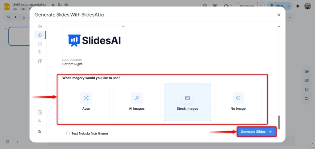Once everything’s set, click “Generate Slides” and watch your script turn into a polished presentation.