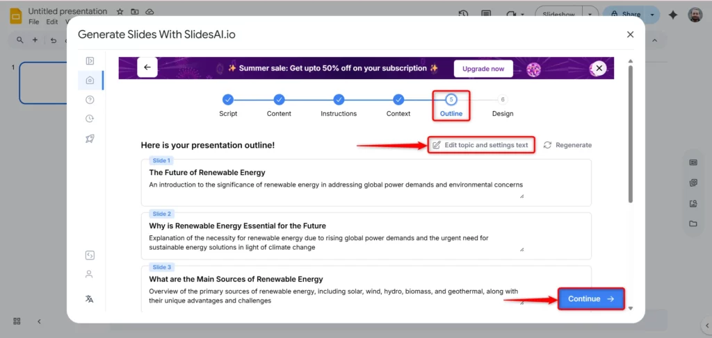 SlidesAI will automatically generate a structured outline based on your script.
